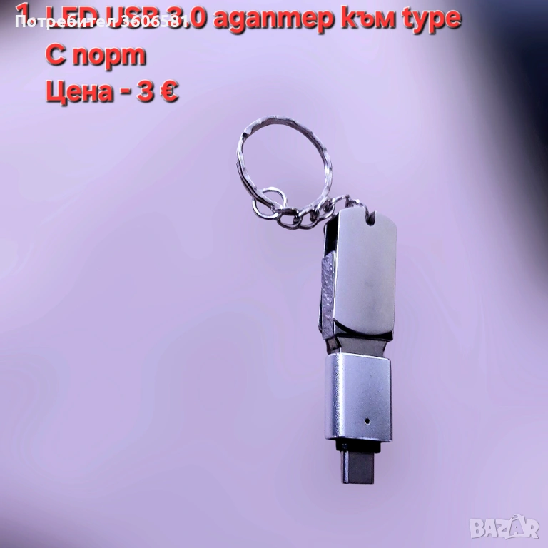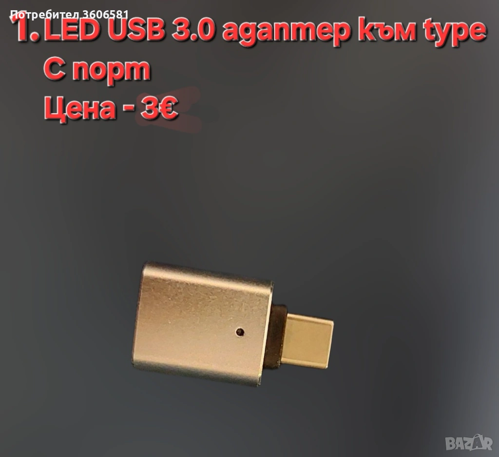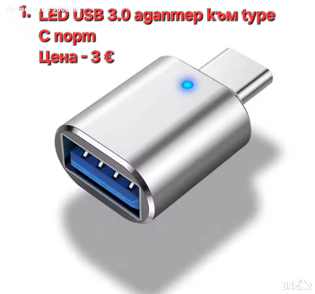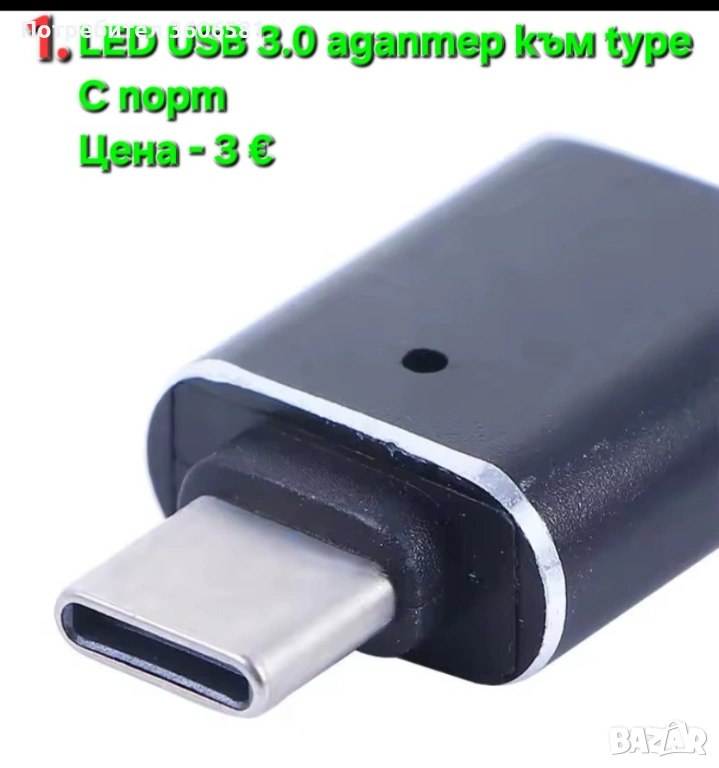 1. LED USB 3.0 адаптер от мъжки към женски с конектор към USB 3.0, 2.0 (USB 3.0 към type C адаптер