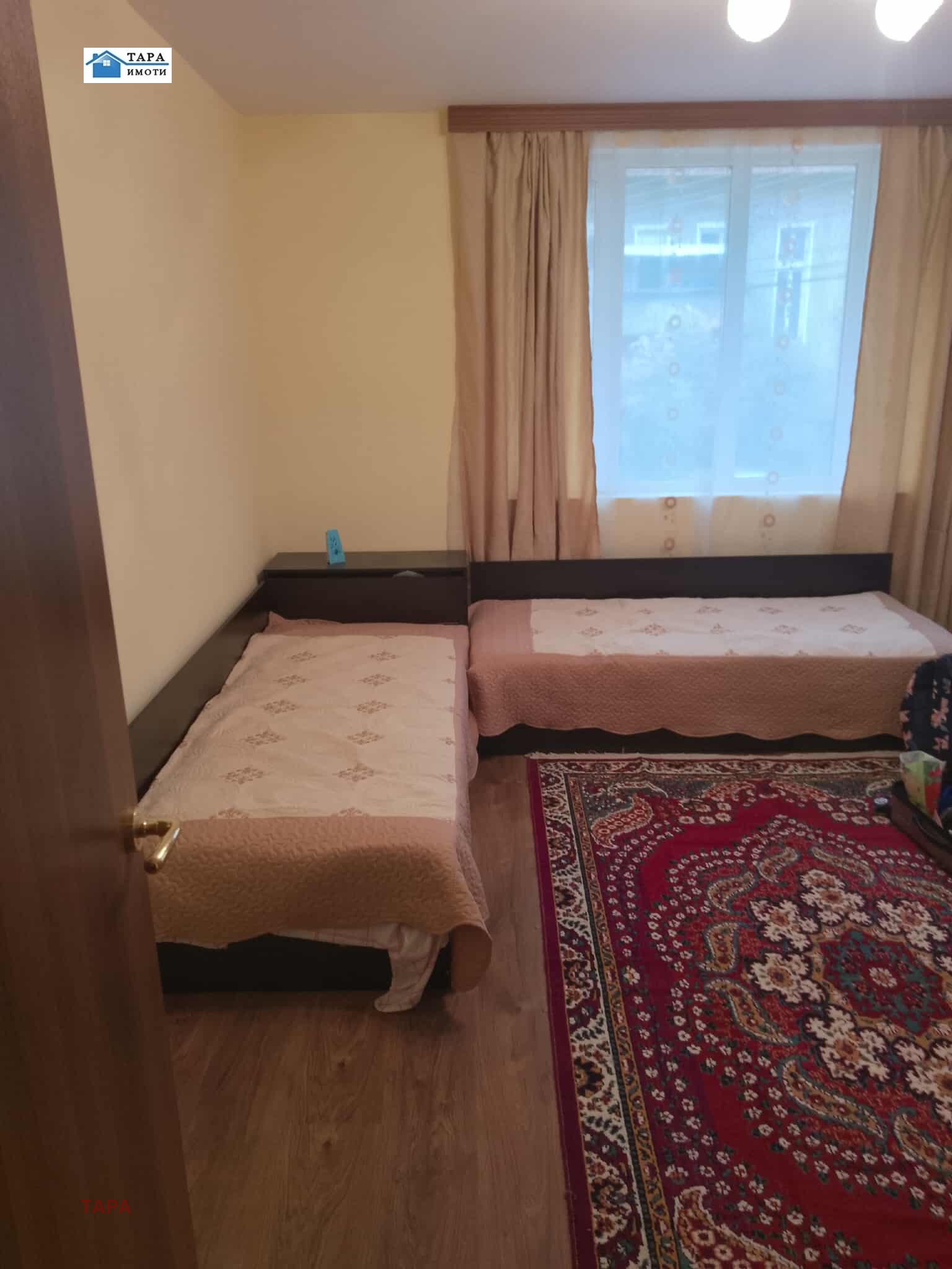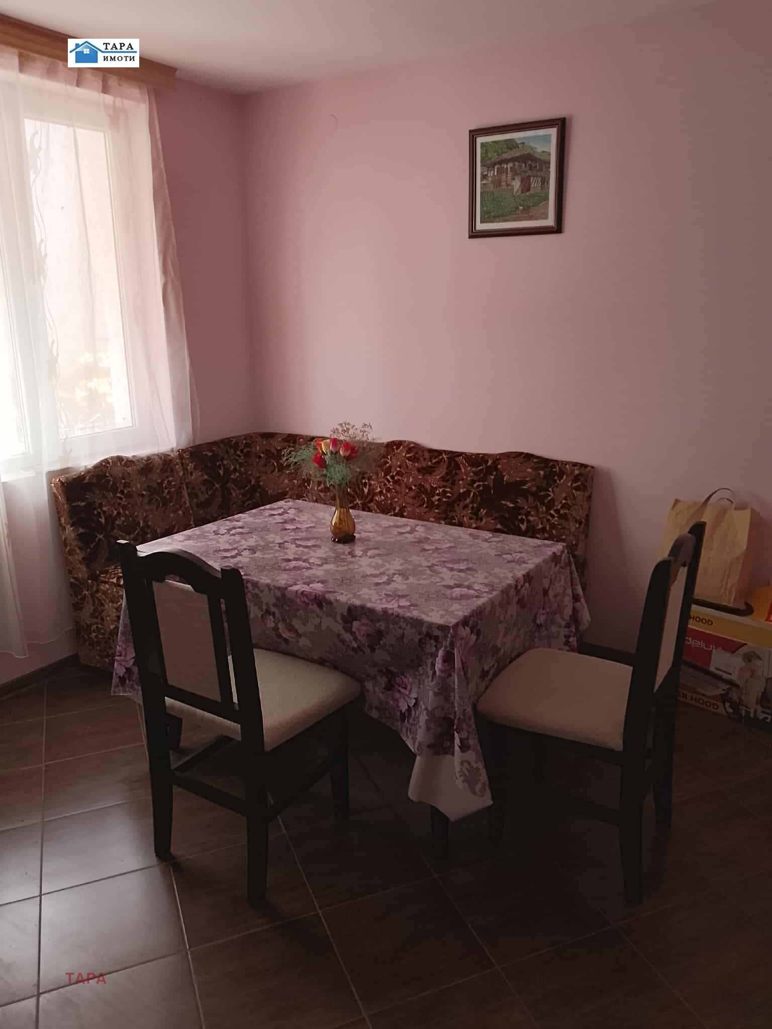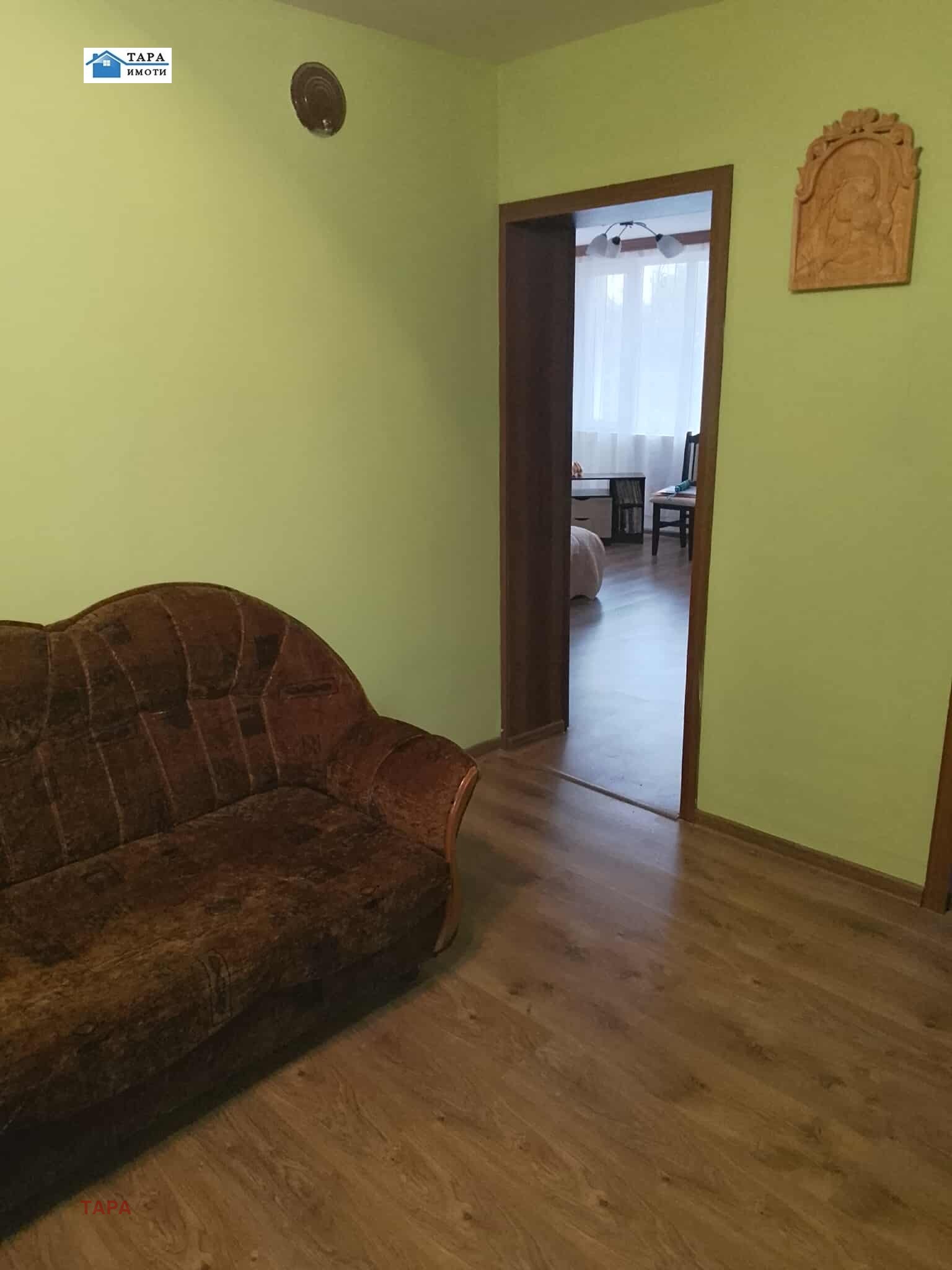 ПВЦ дограма, стени-фина щпакловка, цветен латекс, подови настилки-ламинат, теракот, сан.възел - с фаянс.Етажа се продава с наличните мебели и оборудване.