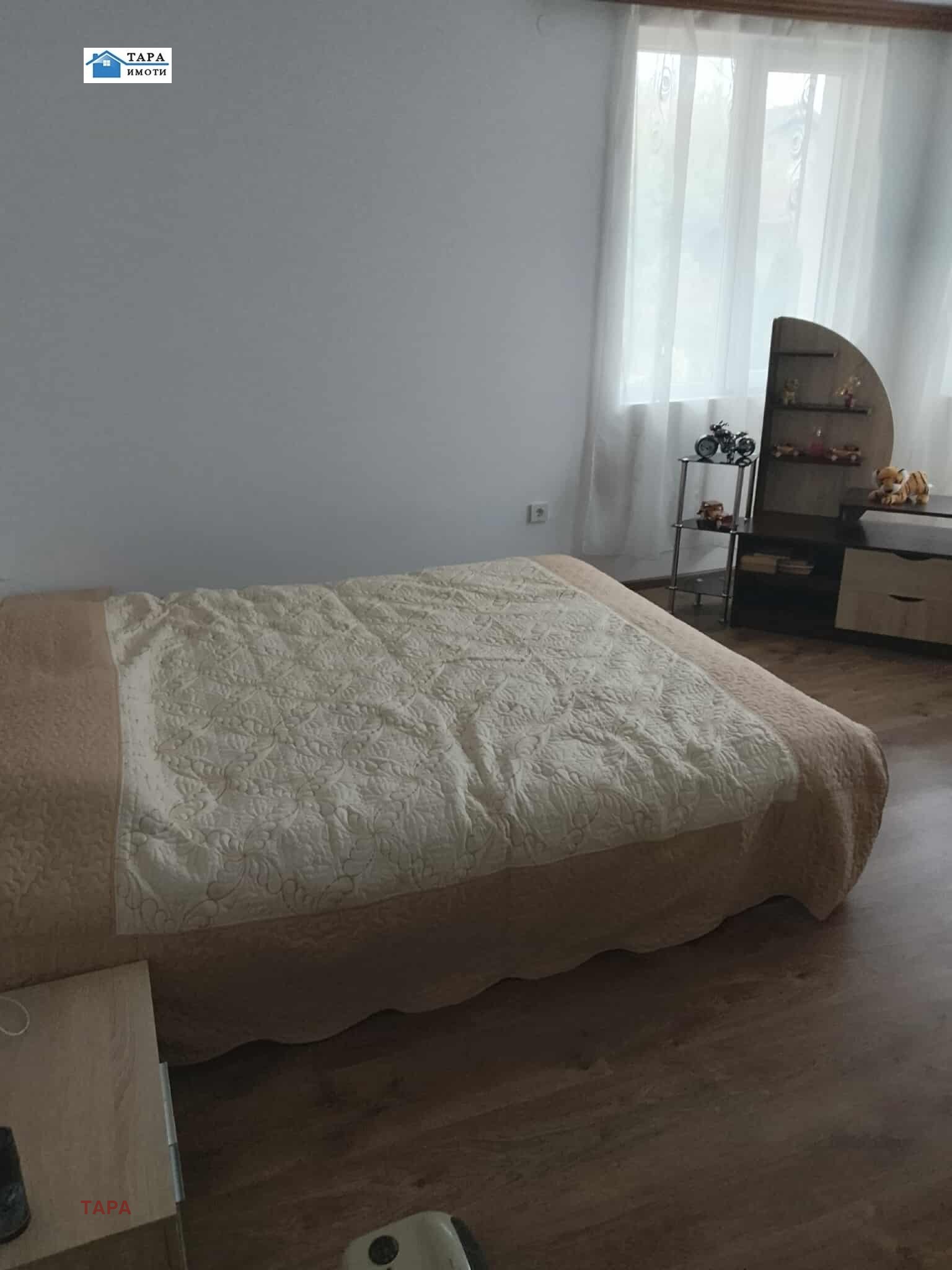 1-ви етаж- с квадратура-103 кв.м, в напълно завършен вид, готов за ползване и се състои от малко входно антре, всекидневна с преход към две спални, кухня, баня- тоалетна.
