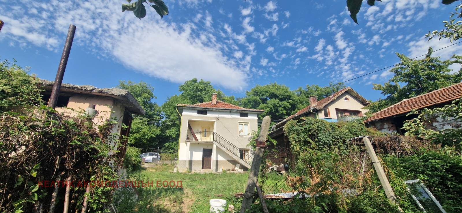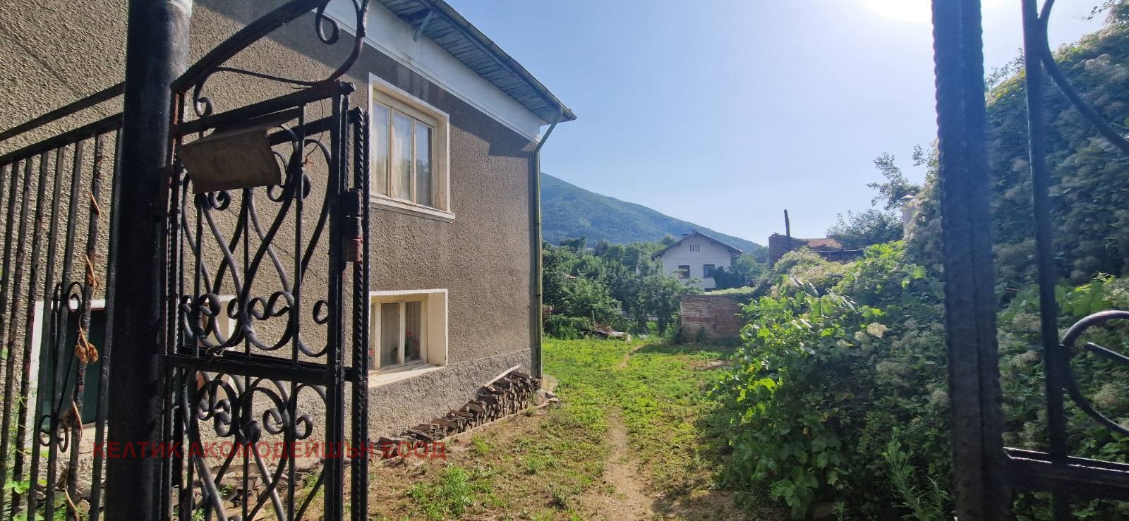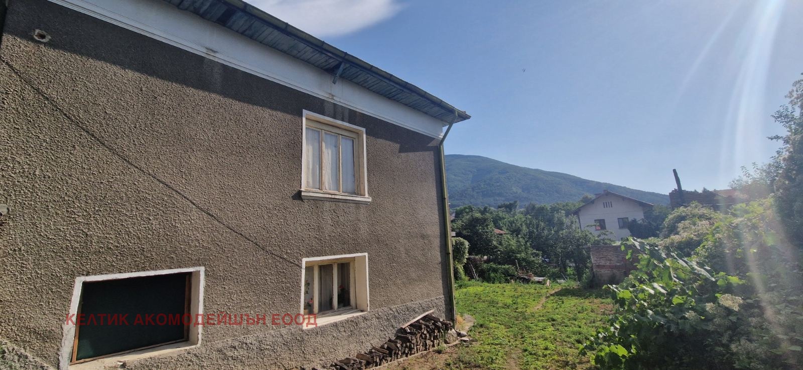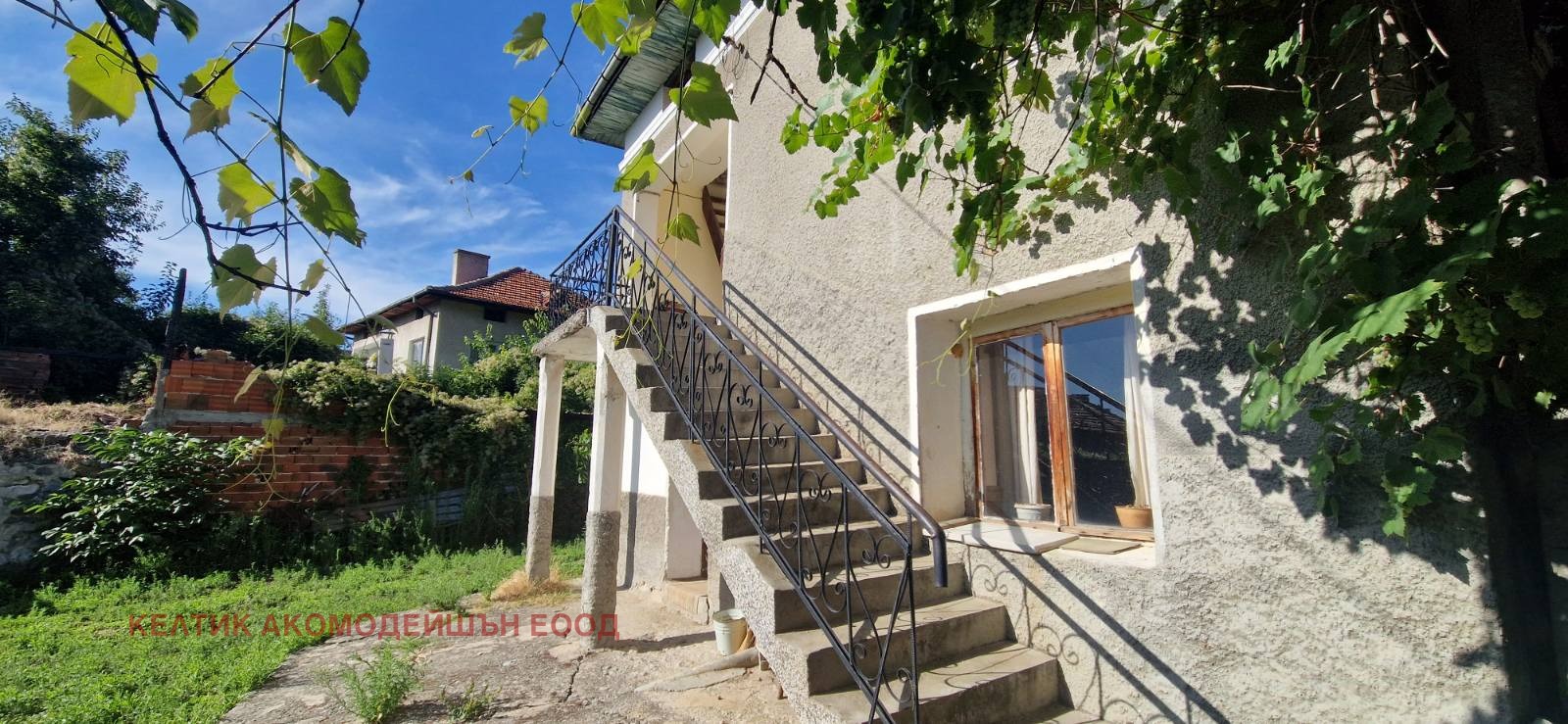 Двуетажна къща с външни стълбища и панорамна гледка към планината