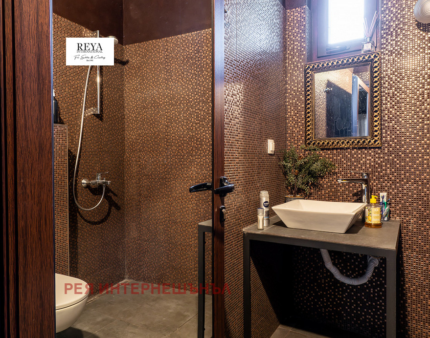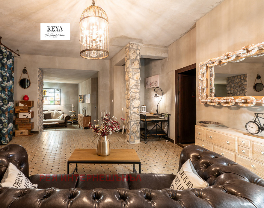 Каменната облицовка и майсторската изработка придават характер и стил, а интериорът е изпипан до последния детайл дизайнерски осветителни тела, мебели от масив и оригинални произведения на изкуството от български автори.