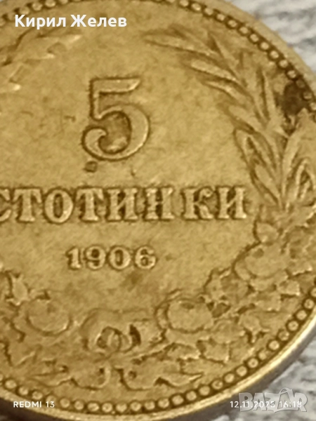Монета 5 стотинки 1906г. Княжество България за КОЛЕКЦИЯ ДЕКОРАЦИЯ 51025