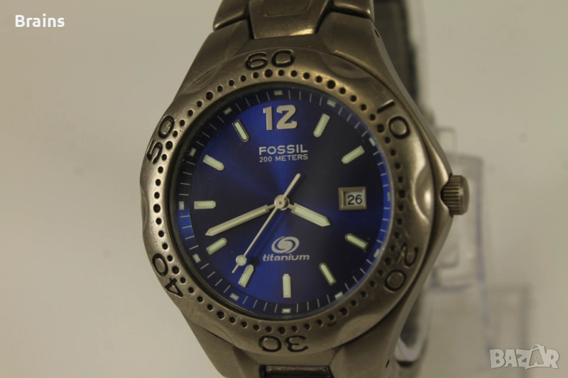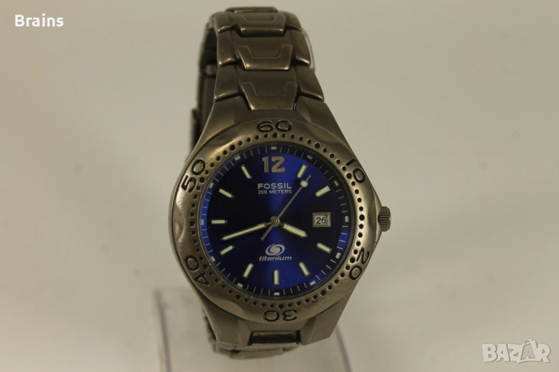 Мъжки кварцов ръчен часовник FOSSIL Blue Titanium. Изцяло изработен от титании. Лек и удобен. Красив син циферблат. Веригата е дълга - става за всякаква китка.