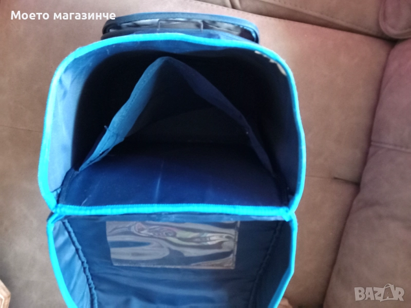 Раницата е използвана, но изключително запазена, изпрана, в много добро състояние, с нормални следи от употреба (замъхени странични джобчета). Всичко е здраво, без скъсано, с работещи ципове.
