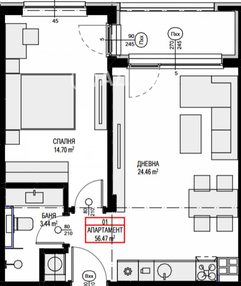 Двустайно жилище със северно изложение, състоящ се от антре, дневна с