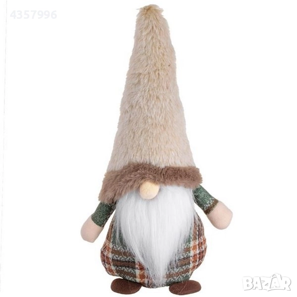 Коледно джудже с кафяво-зелено карирано тяло, брада и бежова шапка → Обява 52392694