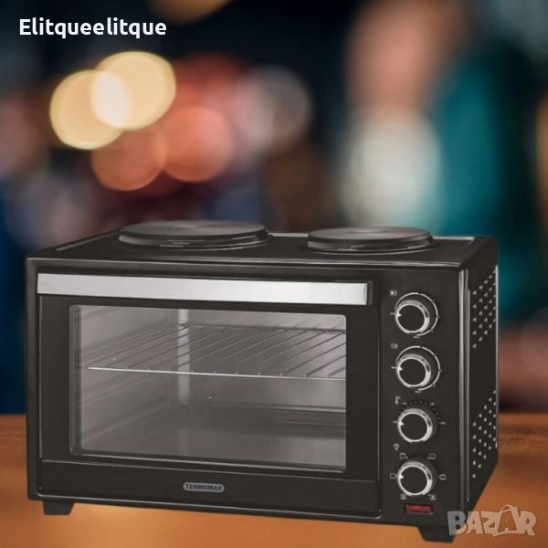 Тип продукт: Готварска печка; Готварската печка Termomax TXC46CL е с компактен размер, 2 котлона и топлоизолирана вратичка с двойно стъкло. Общ/ полезен обем – 89/46 L; Контрол на температурата до 230◦C; Нагреватели от неръждаема стомана 1 котлон с мощност 1200W (Ø – 185 mm) 1 котлон с мощност 800W (Ø – 153 mm); Фурна с мощност 1600W; Вътрешен размер на фурната: 310x430x330 mm; Размер на продукта: 375x580x410 mm; Дължина на кабела: 900 mm; Вентилатор 10W; Вътрешна лампа 25W; Топлоизолирана вратичка с двойно стъкло; Аксесоари: Емайлирана тавичка с размер: 430x320 mm, Грил решетка с размер: 430x320 mm; 3600W, 220-240V/ 50-60 Hz; Гаранция 24 месеца.