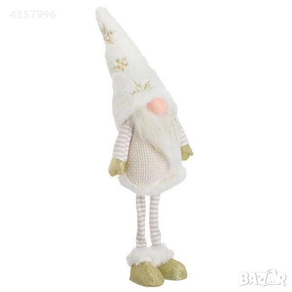 Коледна декоративна фигурка на Дядо Коледа - джудже с екрю раирани крака, екрю палто с релефен дизайн и кожена шапка със златни фолиеви люспи. Има високи метални крака.