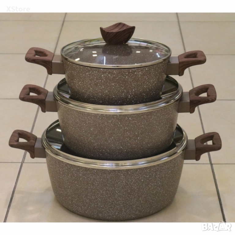 Комплект от три алуминиеви тенджери с капак → Обява 52392839