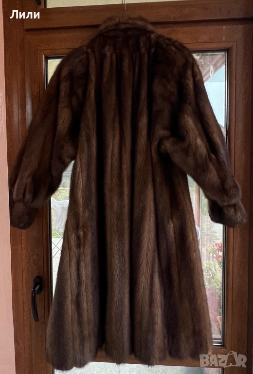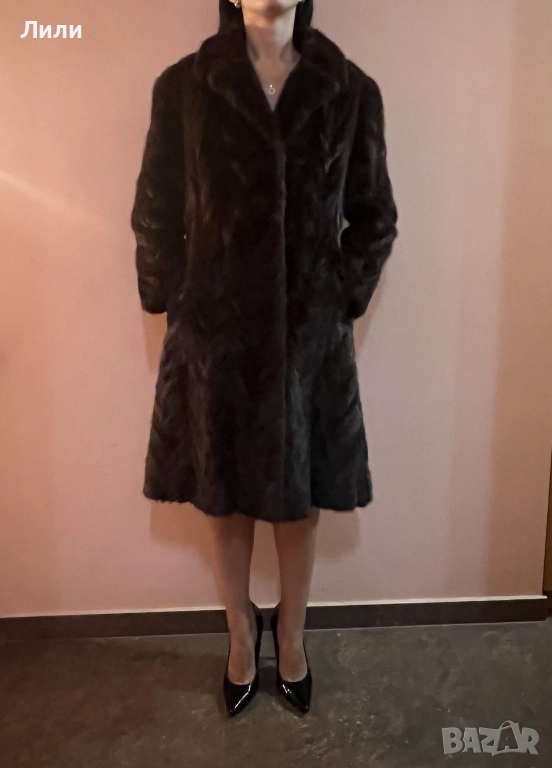 Палто от визон - тъмнокафяво, Размер: S, средна дължина