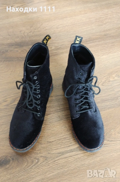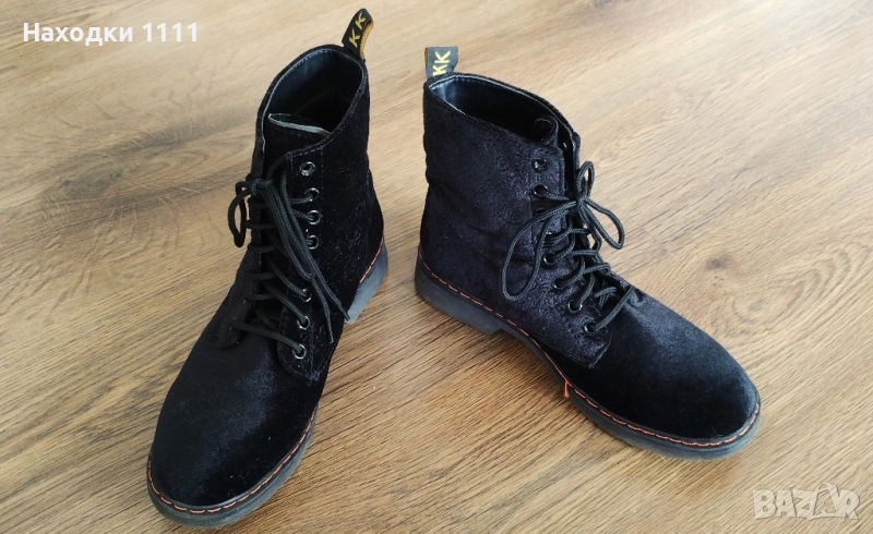 Уникални кадифени кубинки боти, черни, готик, размер 37, като нови → Обява 52392920