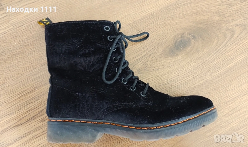Страхотни черни кубинки / боти с връзки от кадифе с леки декоративни орнаменти, много ефектен модел. Имат леко готик излъчване :-).