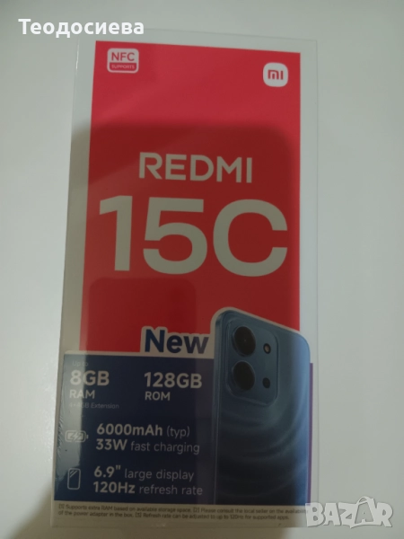 Чисто нов Смартфон GSM XIAOMI REDMI 15C 128 GB, RAM 8 GB, 6"9 large display. Син.Неразпечатан.