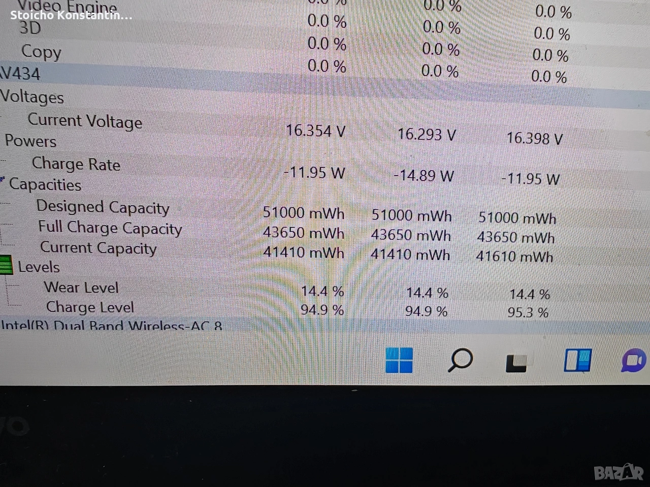 Батерия на около 90%, вижда се на снимка.