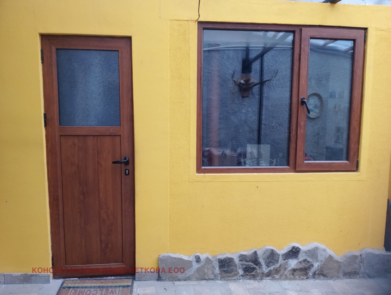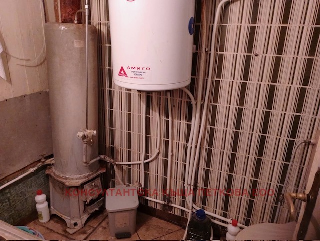 бойлер на дърва. Тук дограмата е PVC, подът - теракот.