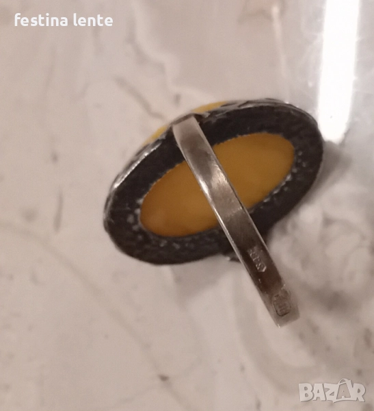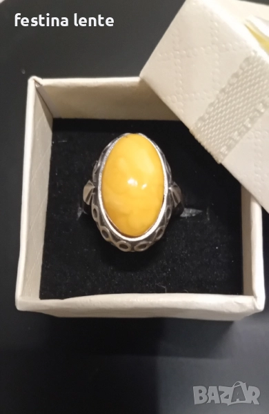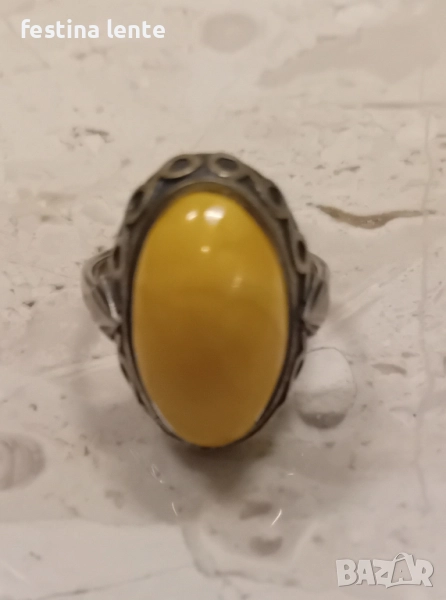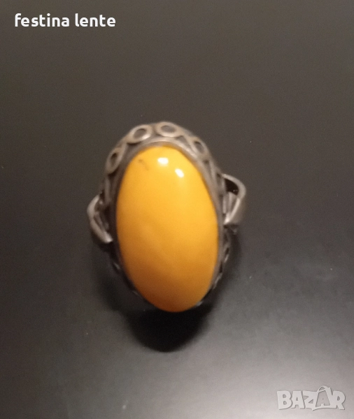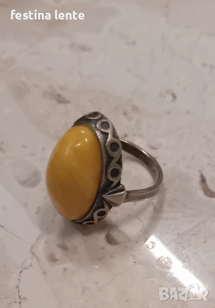 Стар руски сребърен пръстен с яйчен кехлибар → Обява 52393527