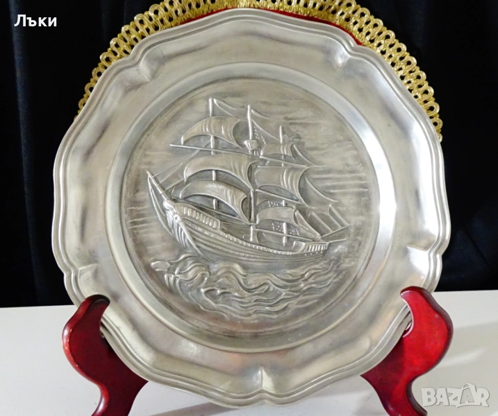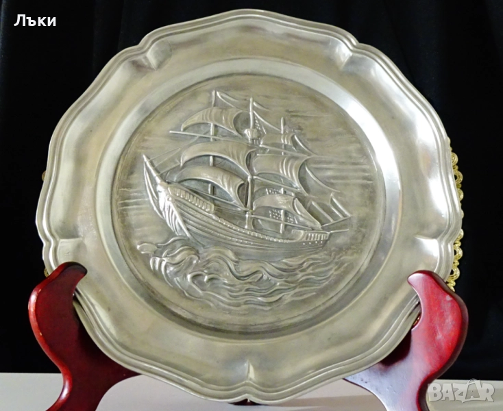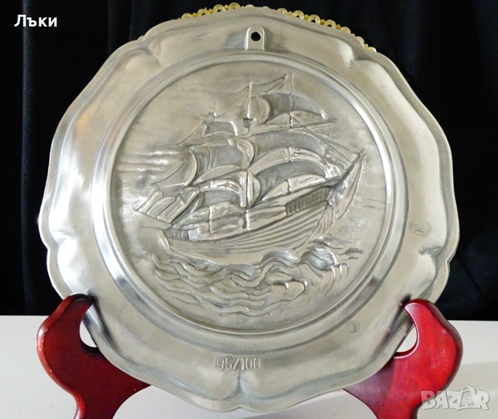 ръчна изработка от 95% калай и 5% сребро,маркирана от производителя.В центъра е