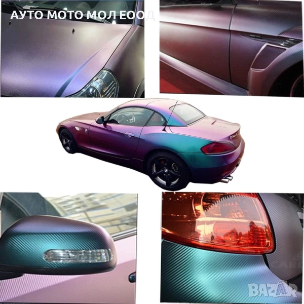 Хамелеоново (преливащо) винилово фолио с текстура на въглеродни влакна, което се използва за облепване на автомобили и други повърхности.