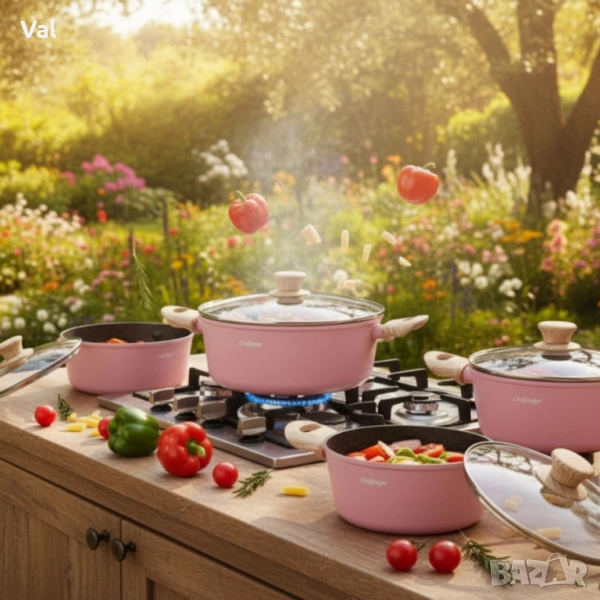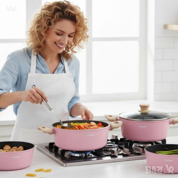 Cheffinger-розов комплект тенджери, с мраморно покритие, здравословно готвене без залепване → Обява 52394618