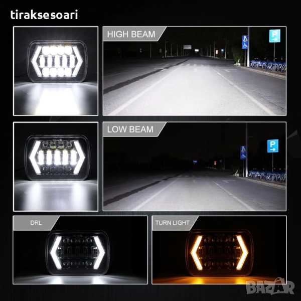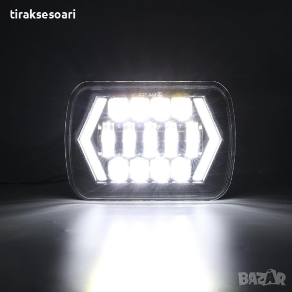Комплект модерни LED фарове 200W , подходящи за Jeep Wrangler YJ, Cherokee XJ и всички автомобили с правоъгълен фар 5x7" / 7x6". Размерите им са 20 х 14 см, което ги прави идеален заместител на оригиналните фарове.