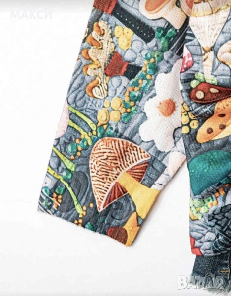Макси модерна топла, много мека и силно еластична блуза в красив ярък десен с цветя и гъбки- комфорт → Обява 52394800