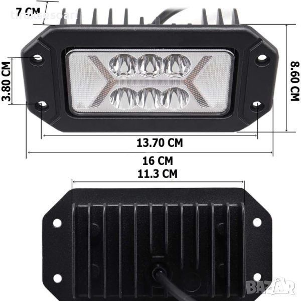 Корпусът е издръжлив, водоустойчив, защитен от вибрации и външни влияния, което гарантира надеждна работа за над 30 000 часа. Монтажът е лесен и стабилен, подходящ за предна броня, маска или допълнителни стойки.