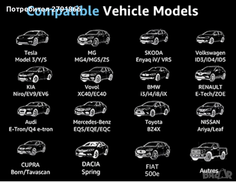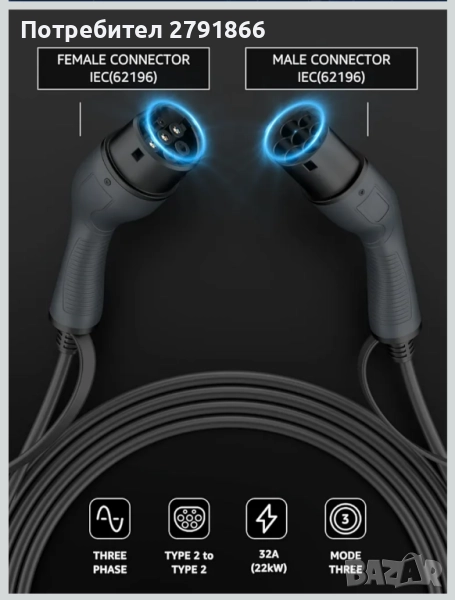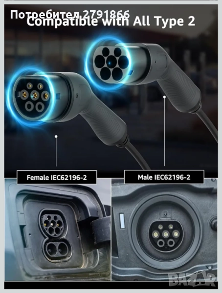 - Универсална съвместимост: Този кабел е съвместим с всички електрически превозни средства, използващи стандарт за зареждане тип 2, което осигурява широка съвместимост и гъвкавост.