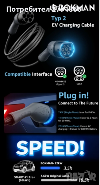 Високоскоростно зареждане: Зарядният кабел поддържа високоскоростно зареждане, което ви позволява да зареждате електрическото си превозно средство бързо и ефективно. Прекарвайте по-малко време в чакане и повече време на път.