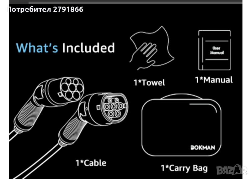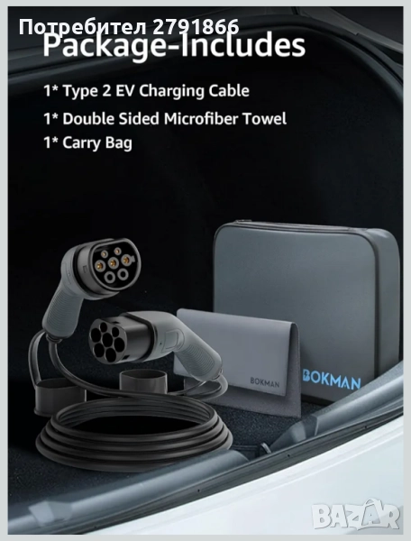 Кабел за зареждане на електрически превозни средства; Калъф за носене на кабел; Кърпа за почистване