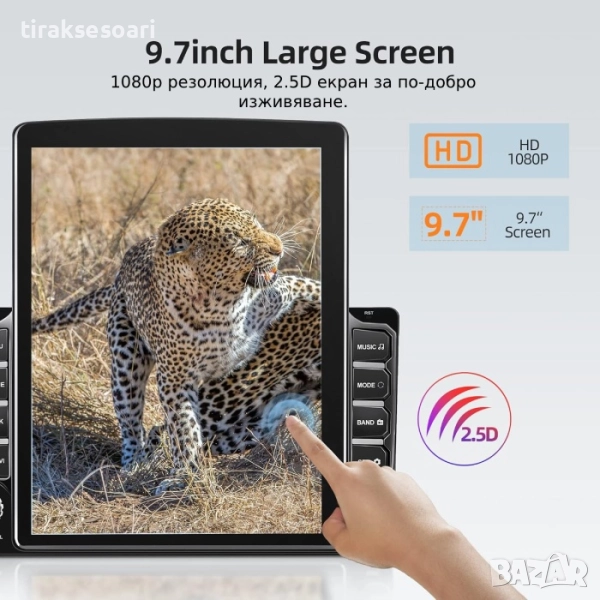 Вертикален 9.7" 2.5D капацитивен тъчскрийн с 1080P резолюция. Вграден Hi-Fi усилвател, поддръжка на субуфер и чист, силен звук.