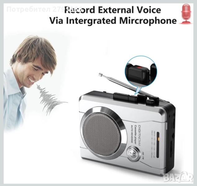 DIGITNOW! Джобен AM/FM радиокасетофон вграден високоговорител