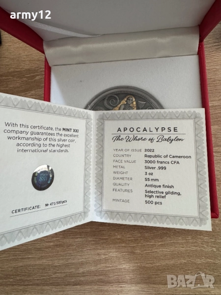 Високо релефна сребърна монета 3oz. със сертификат и кутия.