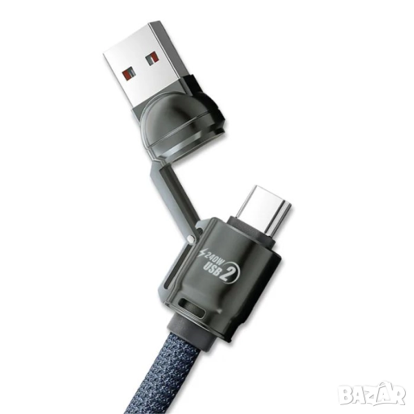 - Бързо зареждане (Fast Charge) – поддържа мощност до 240W, подходящ за телефони, таблети, лаптопи и други устройства.