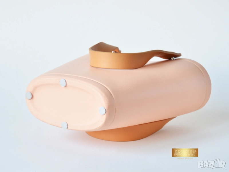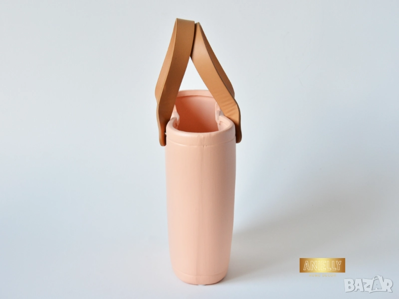 Изработена от висококачествена керамика и декорирана с елегантни кожени дръжки, тя впечатлява с мек нюанс на прасковено розово, който носи топлина и свежест. 🍑✨
