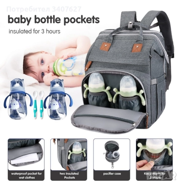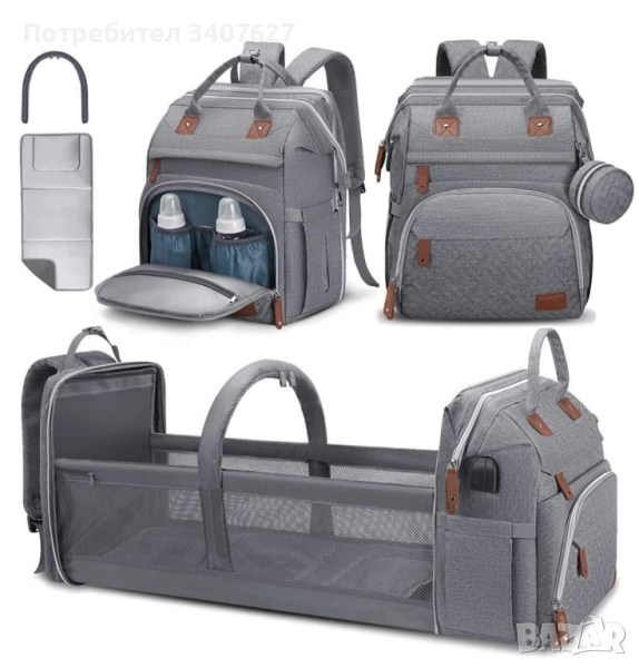 Раница за бебешки принадлежности, сива → Обява 52395357