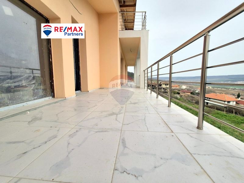 Удобно стълбище води към втория етаж, където са разположени четири самостоятелни спални, всяка с излаз на панорамна открита тераса, което осигурява допълнително удобство и функционалност. На етажа са разположени и два комбинирани санитарни възела.