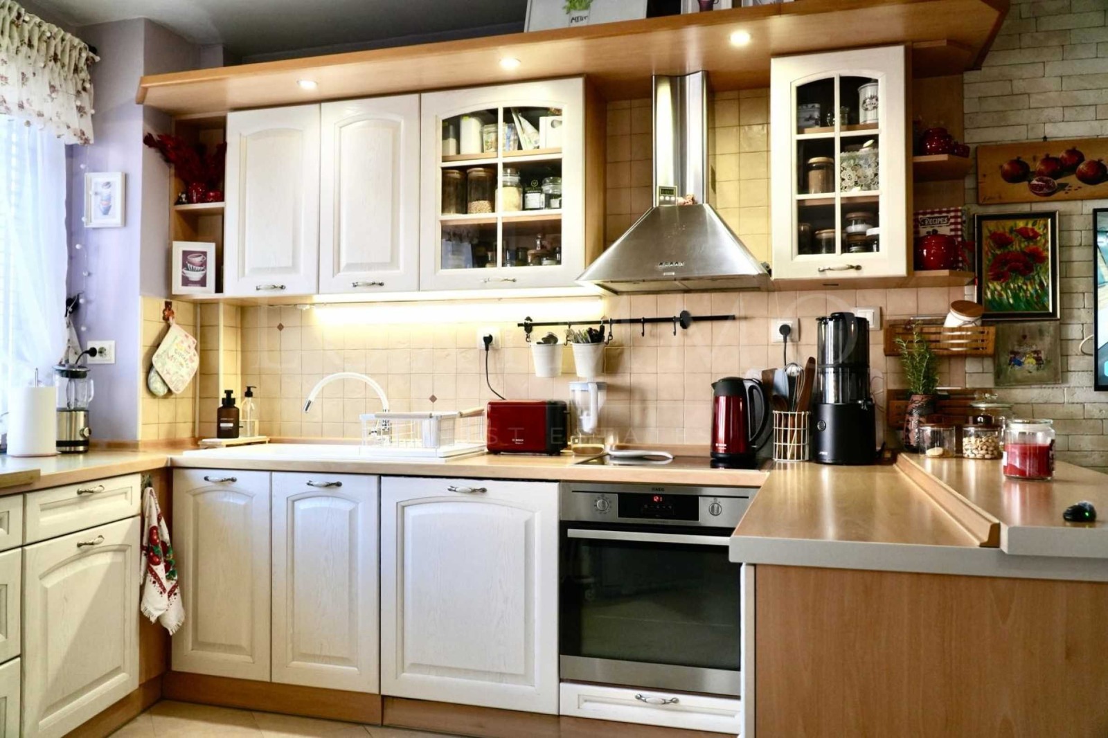 Интериорът е изцяло завършен и предлага индивидуален дизайнерски почерк комбинация от смели цветове, изразителни текстури и внимателно подбрани мебели. Всяко пространство носи собствена атмосфера и усещане за дом, който не следва тенденции, а ги създава.