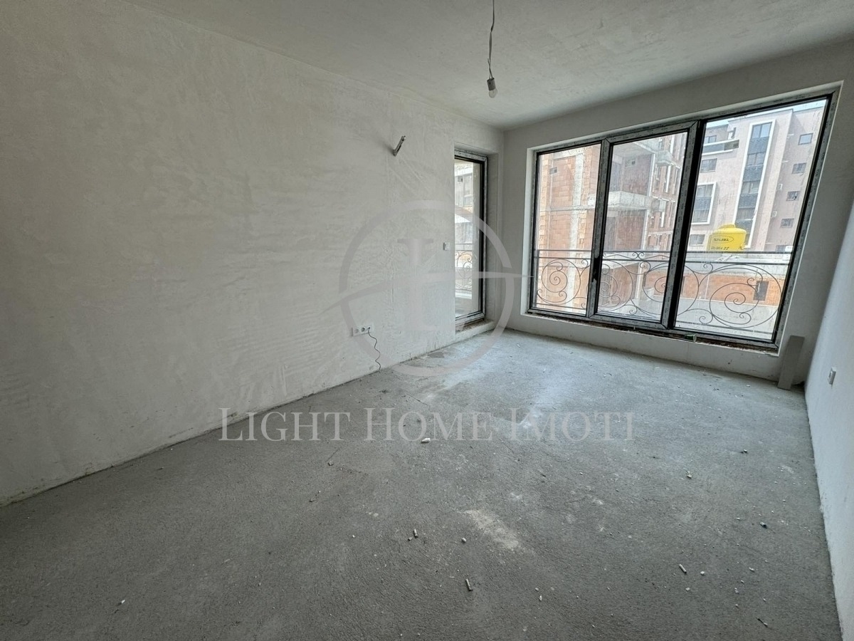Апартаментът се продава на шпакловка и замазка, ВиК на тапа, цялостно окабеляване и поставена масивна блиндирана входна врата.