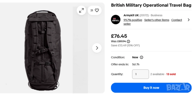 НОВ Оригинал Английски Военен САК РАНИЦА 80-100 литра Мобилизационна Чанта 90x32x32см Кордура БАРТЕР