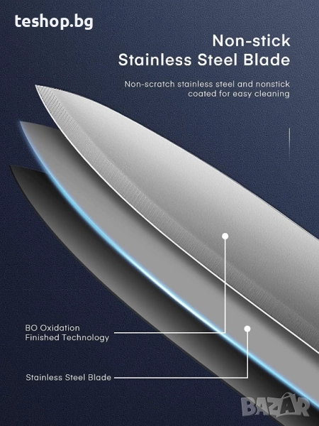 Комплект кухненски ножове без ръжда: Остриетата от неръждаема стомана с черно незалепващо покритие са изработени от висококачествена високовъглеродна неръждаема стомана за защита от корозия и ръжда. Всеки нож е остър и здрав и осигурява прецизни резултати при рязане.