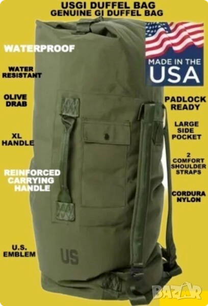 • АРТИКУЛ: Оригинални Класически Военни Комбинирани РАНИЦИ САКОВЕ Армейска Тактическа Ръчна Пътна Транспортна Ловна Туристическа Мешка Чанти и Денкове; (Genuine US Army MOD NATO Issue Duffle Bag 80 Litre Capacity USGI Military Deployment Top Load Backpack Rucksack Sea Bag Heavy Duty 1000 denier Cordura Nylon Water Repellent Canvas);