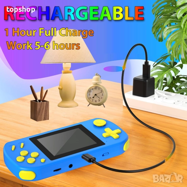 ДЪЛГОТРАЙНА АКУМУЛАТОРНА БАТЕРИЯ: Играчката за игри е оборудвана с акумулаторна батерия, която осигурява непрекъснато захранване за детските игри. Елиминирайте притеснението от купуване и смяна на батерии. След пълно зареждане, джобната конзола осигурява около 5 часа време за игра, което я прави чудесна за забавление в движение.