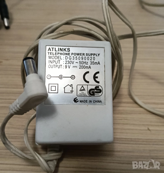 power supply model DC35090020, inpout 230- 50 Hz,35 mA; output 9 v -200mA