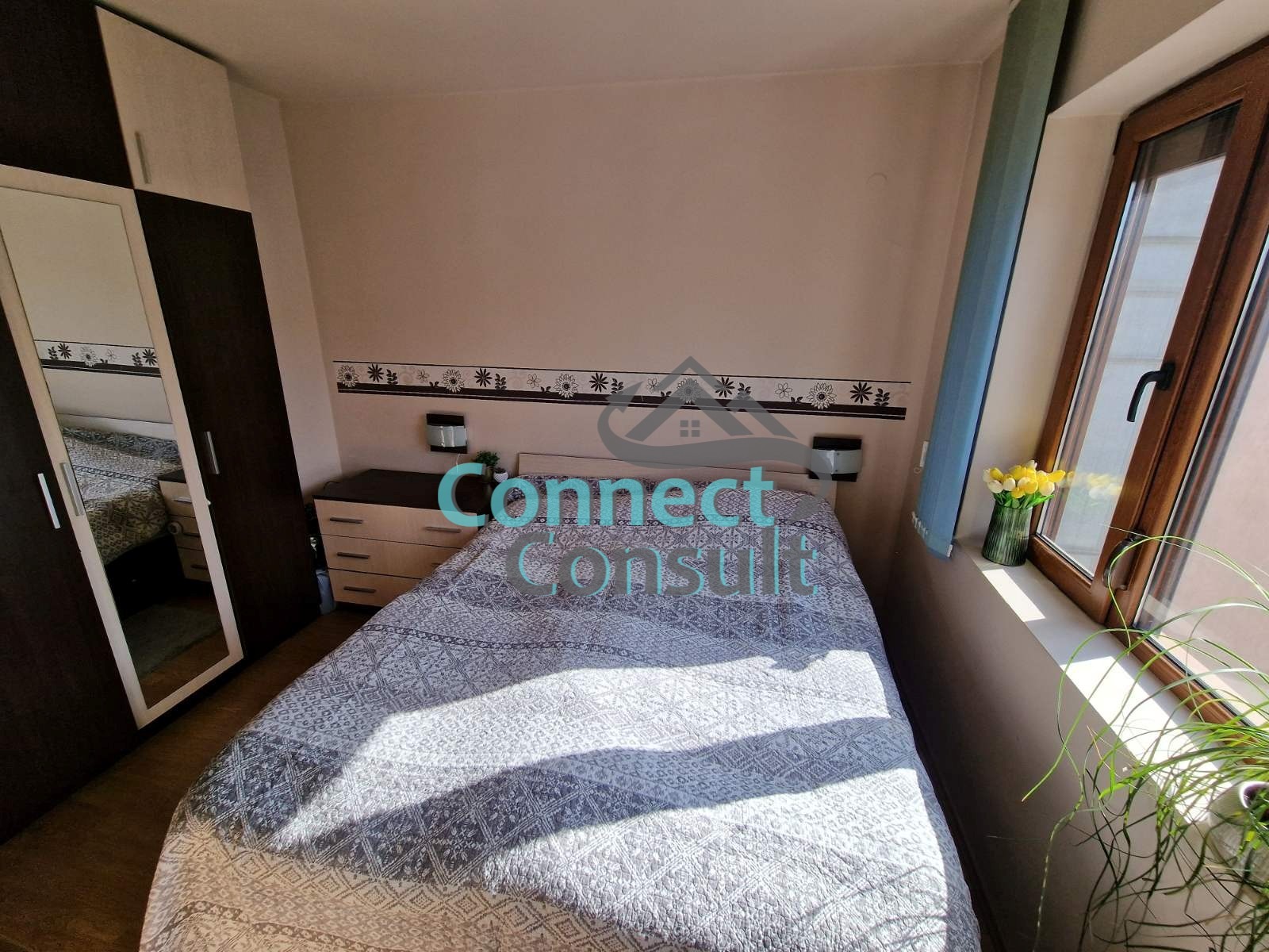 Агенция Connect Consult предлага под наем просторен и уютен двустаен апартамент, разположен в централната част на града в района на хотел Его и Четвъртък пазара. Жилището е на висок, но не последен етаж, в поддържана сграда с асансьор и впечатляваща гледка към хълм Бунарджика.