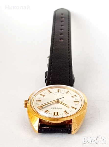 Wostok Восток - позлатен мъжки часовник с ръчно навиване, позлатен корпус-10 микрона. С нова кожена каишка.