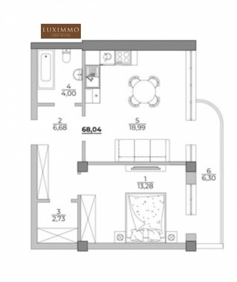 Имотът с обща площ от 68.04 кв.м се намира на 4-ти етаж от 5.