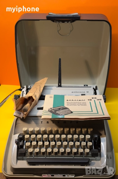Пишеща Машина Triumph Gabriele 10 Проверена ревизирана и смазана, има превключвател чрез който може да смените цвета на който да пишете, даваме и лента за нея бонус всичко функционира перфектно Работим с Еконт 10 % Отстъпка от цената на доставката ! Изпращане същия ден като на другия ден е при вас с опция преглед и тест ако е възможен такъв, допълнително договаряне за друг ден за доставка. Нужни дани за поръчка 1. Име и Фамилия 2.Телефонен номер 3.Град и Офис на Еконт до който искате да се достави или точен адрес за доставка до дома ви/ за София възможно взимане от място след уговорка или доставяне до адрес в рамките на София Цена 20 лв.