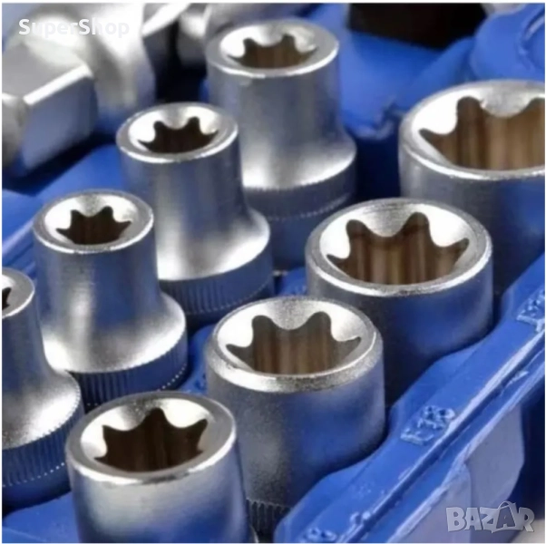 - 5 бр. Вложки Torx: E1O, E11, E12, E14, E16, E18, E20, E24
