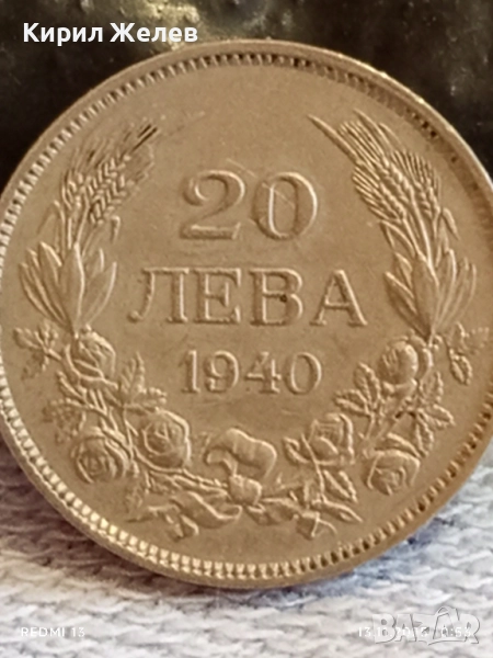 Монета 20 лева 1940г. Царство България Цар Борис трети за КОЛЕКЦИЯ 40418
