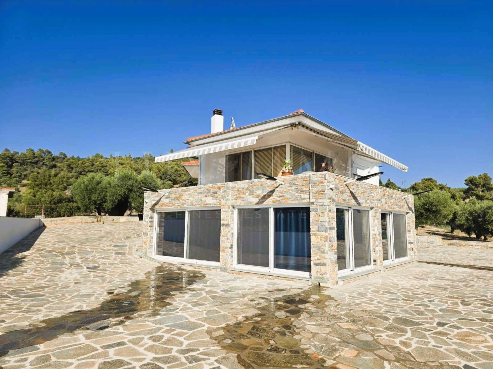Тази прекрасна вила е разположена във високата, тихата и зелена част на Неос Мармарас, Ситония, съчетавайки спокойствието на природата с бърз достъп до всички удобства на курортното селище.